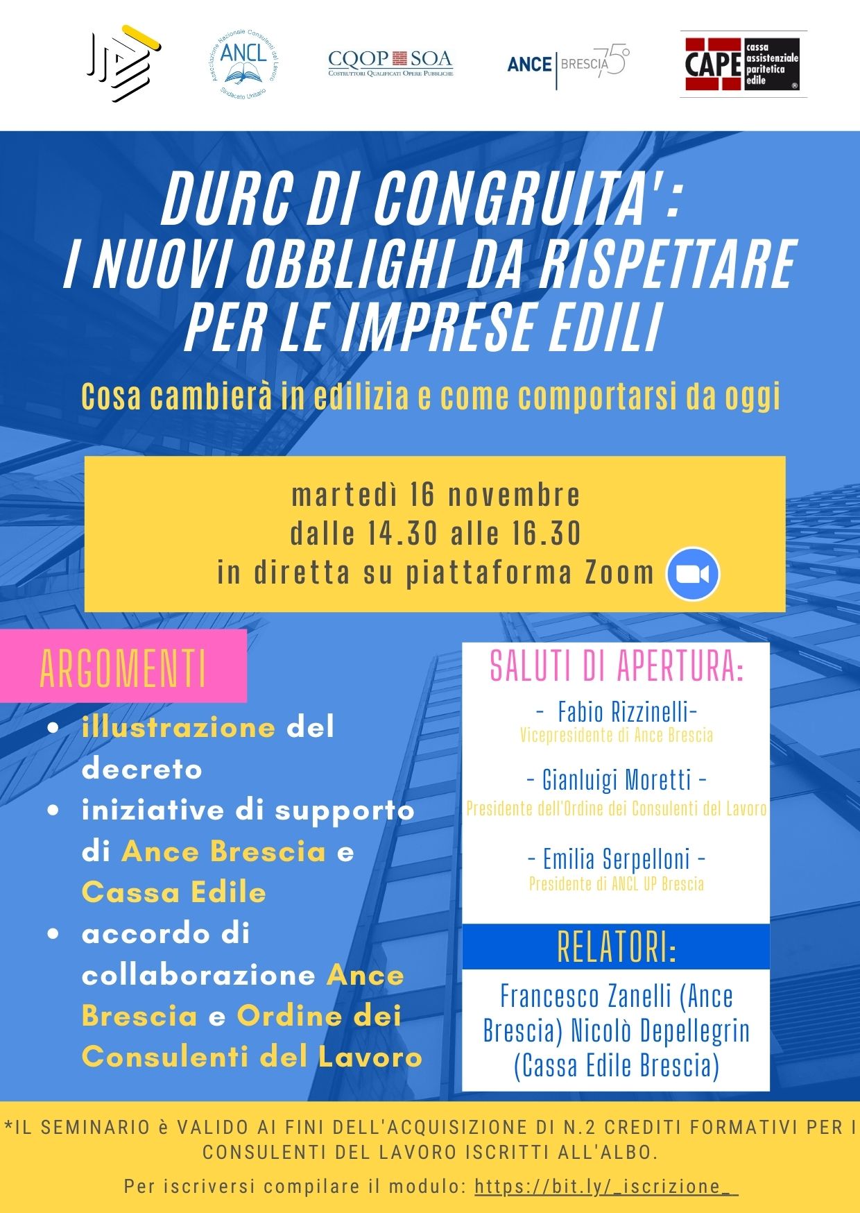 SEMINARIO – DURC DI CONGRUITÀ: I NUOVI OBBLIGHI DA RISPETTARE PER LE IMPRESE EDILI